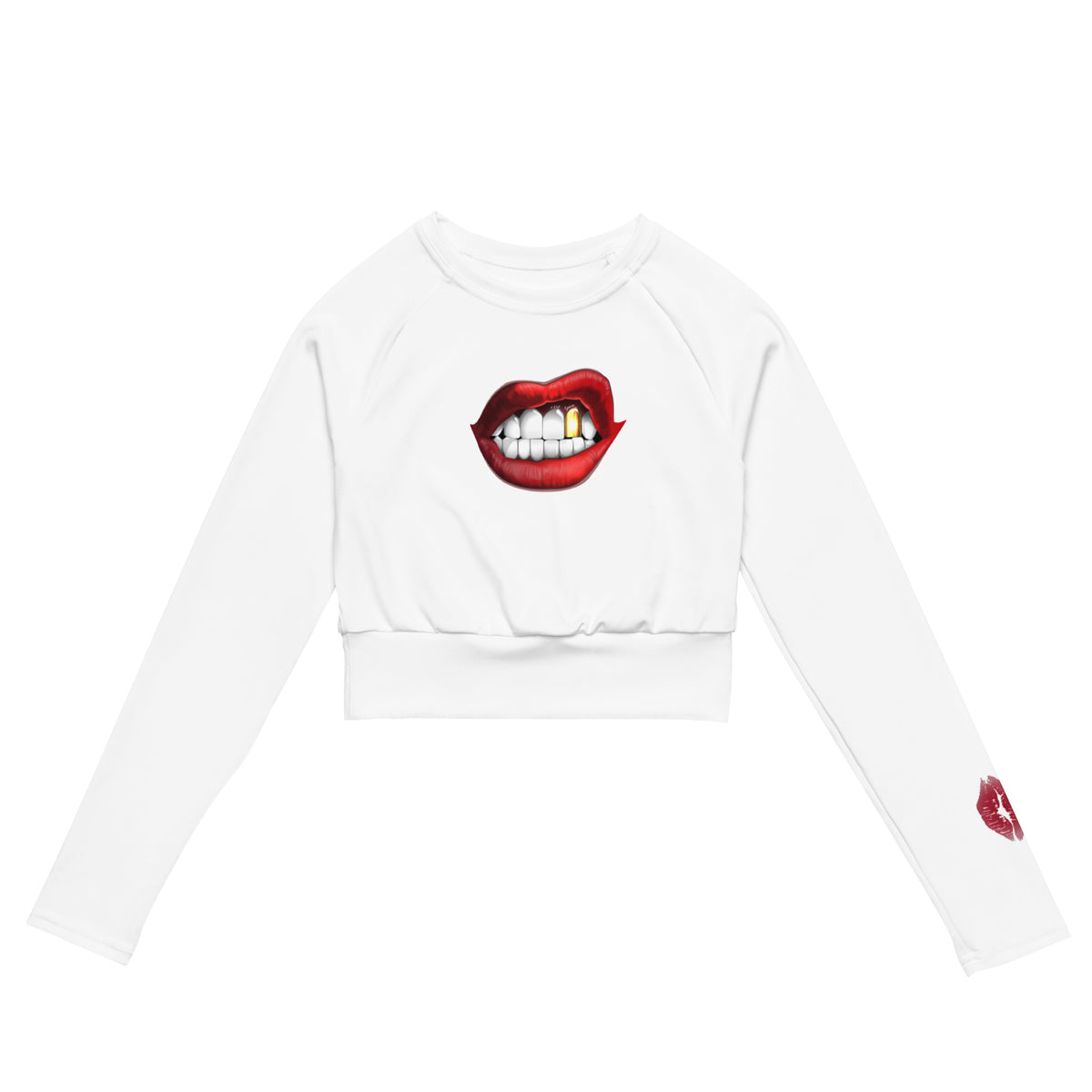 The BOSS Kiss Print Long-Sleeve Crop Top - White