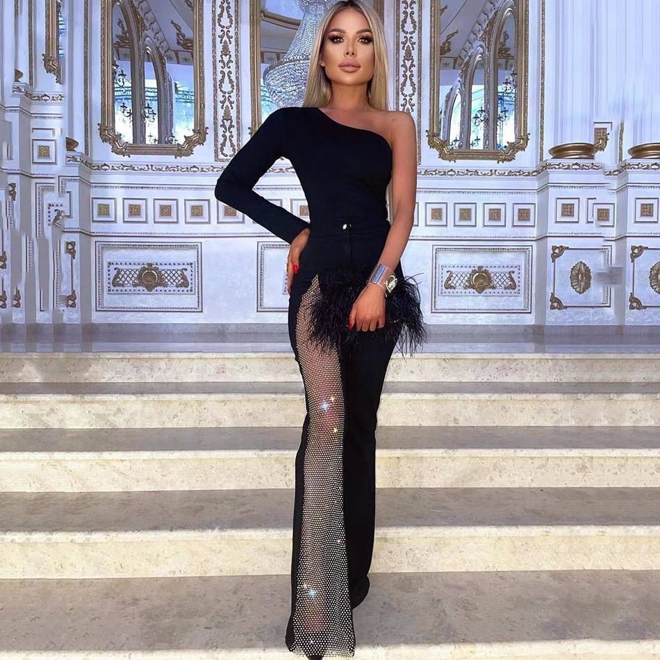 Micro-Flare Mesh High-Waisted Slimming Off-Shoulder Jumpsuit